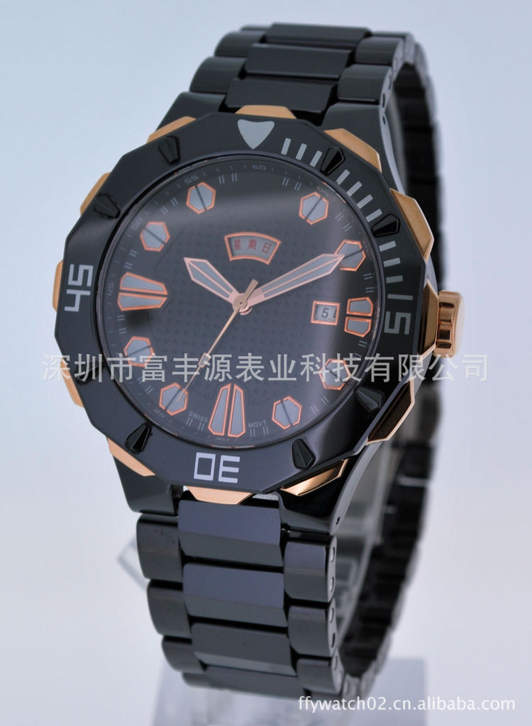 深圳市富丰源表业科技有限公司是一家集生产、贸易、销售为一体钟表专业制造厂家。工厂设址深圳西乡,厂房面积2500平方米;工厂设有工模部、啤机部、表壳部、电镀部、表面部及成表装配部;公司拥有完整先进的钟表生产设备、高精密检测仪器及大规模生产线,配备高素质的开发设计及生产人员,产品从设计到生产严格按照ISO9001-2000质量体系要求进行全程监控和管理,保证每一件出厂的产品都符合国际检测标准;