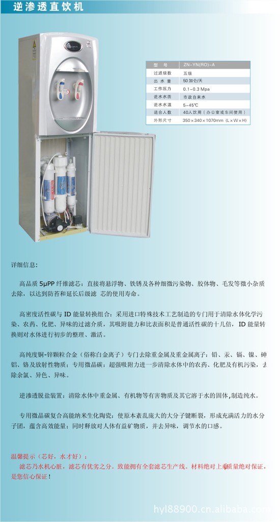 该产品,针对中国水质现状,紧紧围绕着人类身体健康的需求,长年致力于水处理技术的研发。其独持的净水与活化、矿化相结合的水处理技术深受专家们的赞赏和广大用户的喜爱,产品荣获多项国家专利,获得中华人民共和国卫生部许可批件,3C认证、国际水质协会认证。通过ISO9001质量体系认证