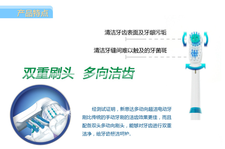 newstart/新思达多动向电动牙刷 双头电动牙刷 电动牙刷厂家 新品