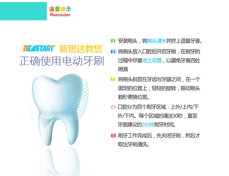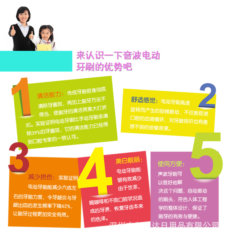 深圳市新思达日用品有限公司座落于深圳市龙岗区横岗镇安良社区,是一家专门致立于口腔护理用品,保健按摩用品及日常用品的开发、设计、生产和销售为一体的高新企业;产品包括牙刷、音乐牙刷、电动牙刷、mini按摩器、理发器、毛球修剪器、剃毛器、便携式冲牙器,自动挤牙膏器,超声波清洁器、计步器、体重秤、厨房秤等。现有产品已远销东南亚、欧洲、北美、南美、中东等国家与地区,深受用户的喜爱;并且产品已通过"CE"”ROHS”等相关认证。本公司拥有自主品牌"newstart" ,在个人护理电器行内享有良好口碑,诚招各国代理商。 新思达工厂面积达3000多平方米,员工100多人,本公司设有精密工模部、注塑部、产品开发部、品质部、丝印部与营业部;在外观三维造型设计、电子技术、模具设计制造、塑胶成型等方面有较强的实力。为了不断提高产品和服务的质量,我们整合优势资源,以丰富经验和先进的管理,谒诚为广大客户源源不断提供新颖、质优和价钱合理产品与优质的服务。 公司本着“质量优良、交货及时、价格合理、服务热情”的经营理念和行为准则;确立“以顾客为中心,制造优质产品”的质量管理服务理念;真诚欢迎新老客户莅临参观、洽谈、合作、贴牌(OEM)或设计(ODM)生产,建立友谊,共展宏图。