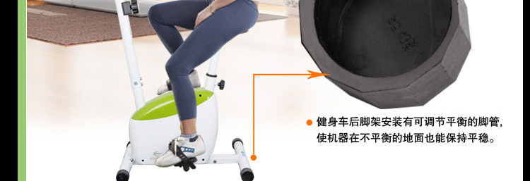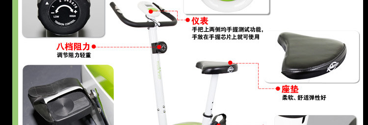 3.3kg飞轮,内磁控阻力系统,皮带式传动,8段阻力调节,手握心率。