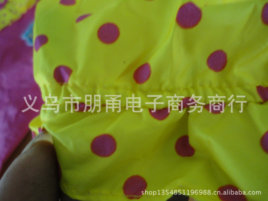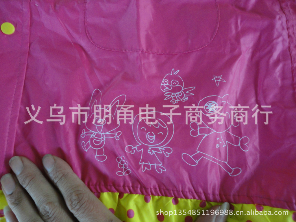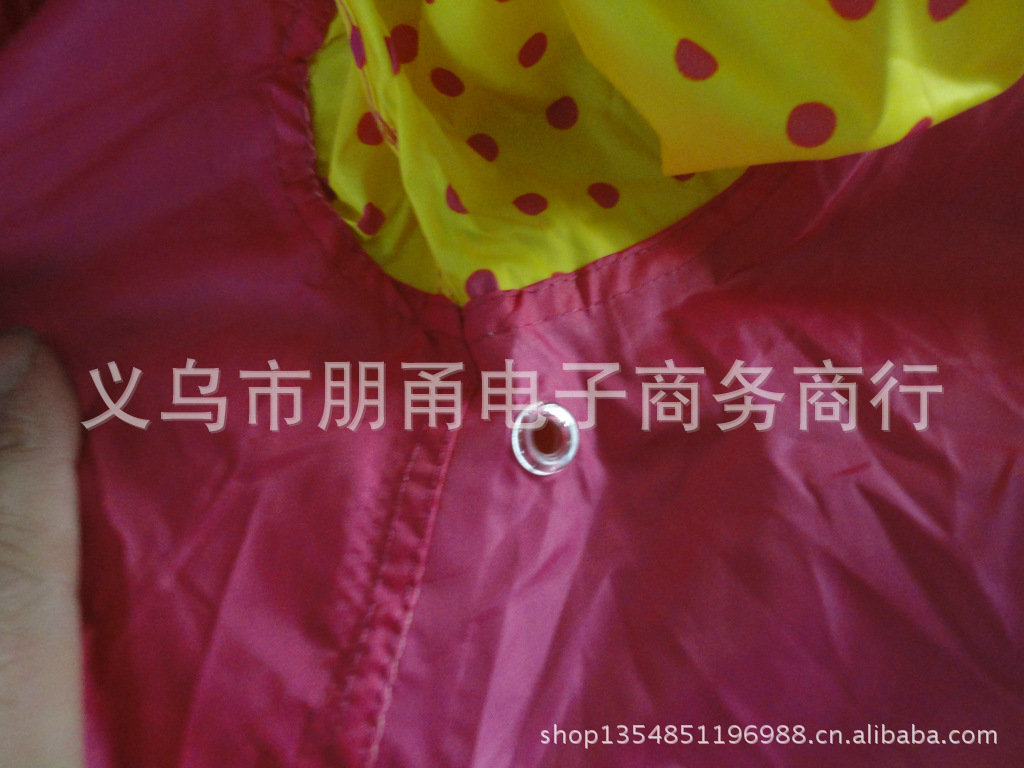 2雨衣由各种PE、eva.PVC等等面料制作,都采用最新技术生产 设备,缝接处防水防漏,无毒无味,超级环保。