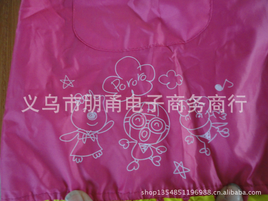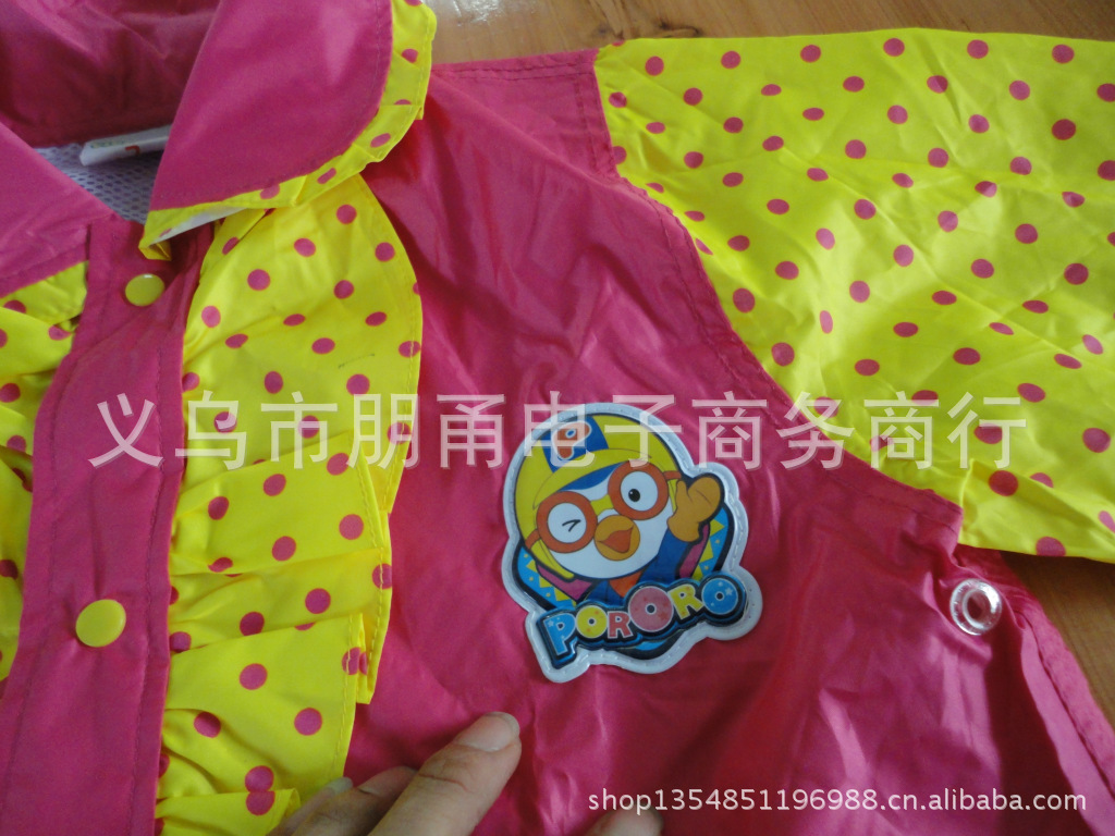 1以上雨衣男女兼用,使用于各种场合,携带方便,多色可选。出口货物均可装箱。面料柔软,遇寒冷不变质,不粘水,干爽舒适,防水性强。