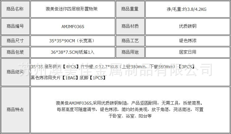 苏州澳美佳金属制品有限公司,是专业从事设计、制作家居置物架、仓储置物架、防静电置物架、展览展示架、仓储货架及其他配套的企业。