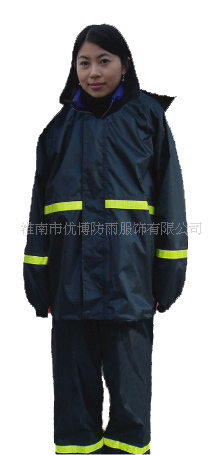 淮南市优博防雨服饰有限公司自有品牌“雨豹”牌。专业生产各种多功能雨衣套装:儿童雨衣套装,时尚男女式雨衣套装,摩托车雨衣,迷彩雨衣,雨衣工作服,防静电雨衣,阻燃雨衣,防油防污雨衣,防酸碱雨衣等系类防护衣!广泛适宜于:石油石化行业,电子行业,化工行业,林业野外作业,公路设施行业,环卫清洁行业,城建保安行业及各级企事业单位学校等!雨衣面料有:涤丝纺系列,尼丝纺系列,春亚纺系列,桃皮绒系列,塔丝隆面料,法丝绒面料,菱形格面料,抗静电面料,阻燃面料,防污防油面料,特氟隆,PU革等面料等。