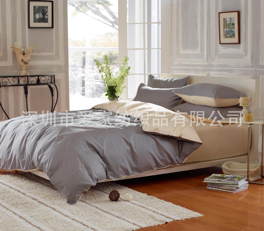 深圳床上用品批发纯棉素色双拼床上用品四件套