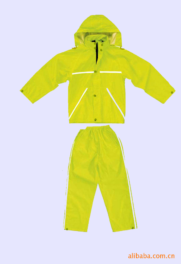 本品为高档防雨面料,加高档PU,PVC防水涂层,五公分高强度反光条,双层防沾身透气网格设计,暗藏式帽子,上下分体套装,防盗防水口袋,休闲款式!
