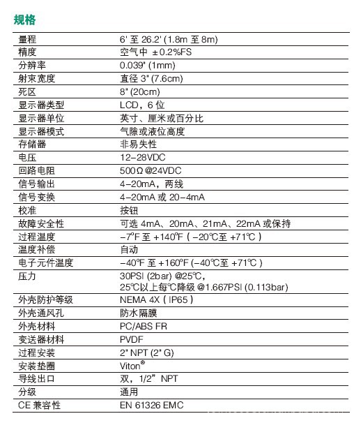 量程达26-feet(8m),2"变送器