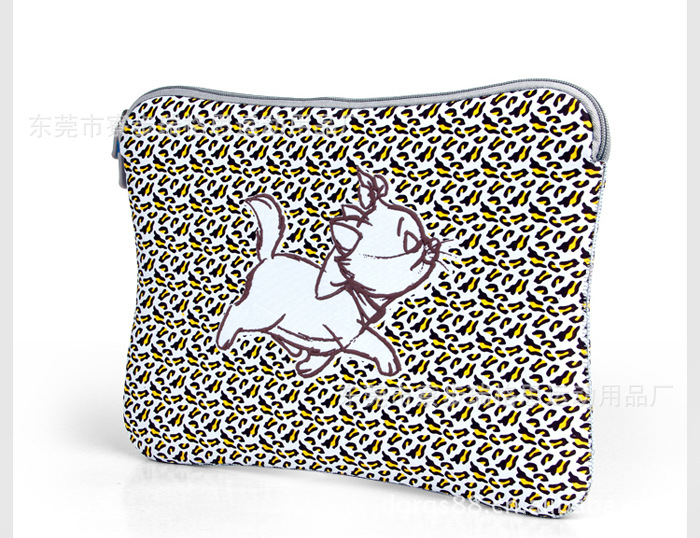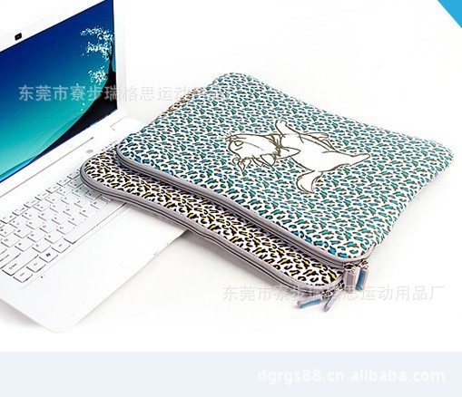 选用高质量潜水服面料/Neoprene弹性面料,经过高温把图纸图象印在表面,风格独特,设计精美,色彩亮丽,手感舒适,既可以防水、防震又可以防机器刮花,而且没有凹凸感。
