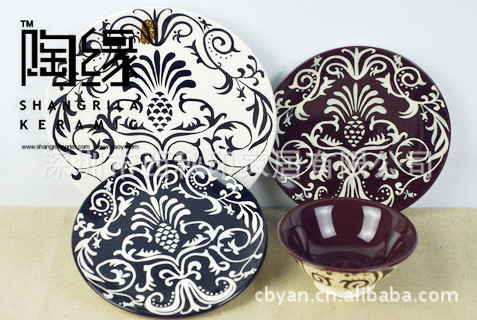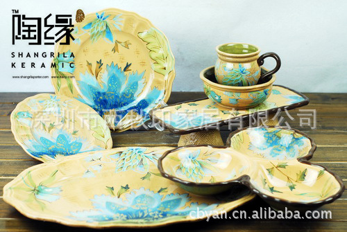 外贸陶瓷餐具,手绘陶瓷餐具套装,盘子,杯子碗,