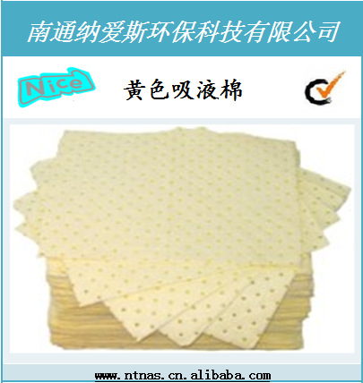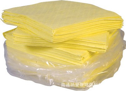 吸液棉(化学品吸附棉)适用于酸、腐蚀性及其他化学液体、化学油品的吸附,适用于诸如酸、腐蚀性及其他危害性液体的泄漏处理。通常为黄色。