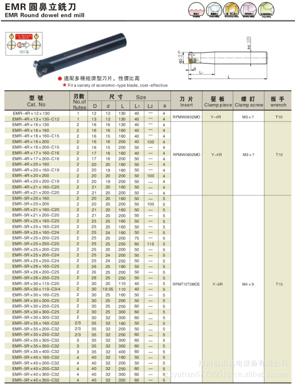 型号 Cat.No | 刃数 No.of flutes | 尺寸 Size | 刀片 Insert |