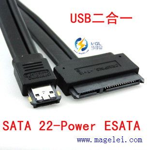SATA 22P转Power ESATA USB二合一数据线 支持12V 5V电压50cm