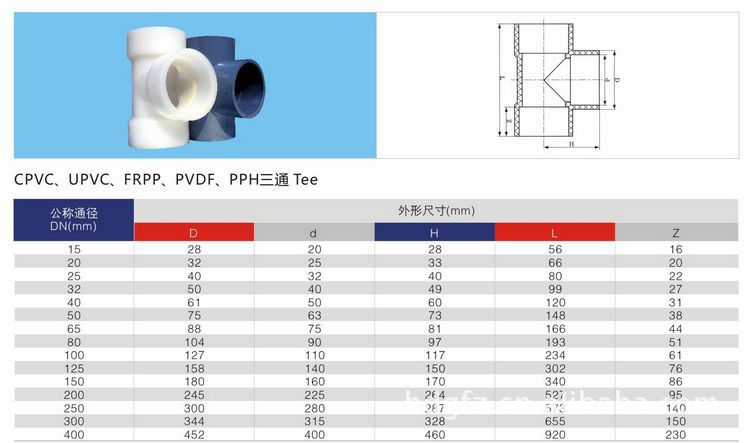 三通管件 CPVC、UPVC、FRPP、PVDF、PPH 产品丰富,专业生产。