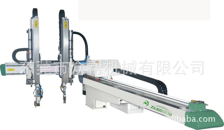 横行轴采用变频马达驱动,也可以选用Ac伺服马达驱动。上下及引拔轴使用气缸驱动。横行、上下手臂均使用进口的高刚性线性滑轨。引拔及上下使用质量轻高刚性的铝合金挤型梁配合线性轴承及高刚性轴承钢,能达到取出速度快、高效能、震动小、使用寿命长的要求。
