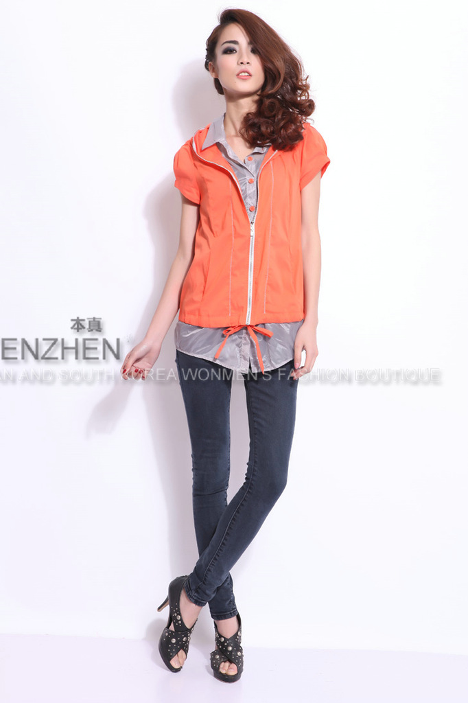 夏装外套 熙兰雅连帽领假两件套拉链 女