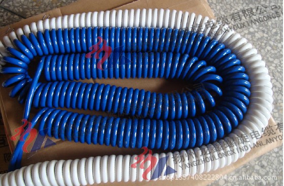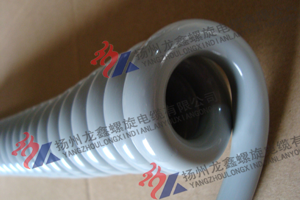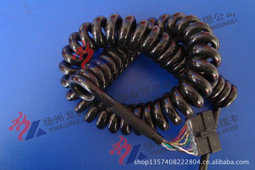 螺旋电缆螺旋电缆线 螺旋线(PUR/PVC)简述几乎所有的行业都有必要使用螺旋电缆。不管在通信(电话,无线电)还是医疗技术、电力机车工业、机械工程,或者在照明工业,螺旋电缆螺旋电缆线 螺旋线在每个地方都有应用。除了电气-机械优点外,螺旋电缆螺旋电缆线螺旋线常常还是作为优秀的光学结构解决方案。如果您使用PVC和PUR电缆,螺旋电缆螺旋电缆线螺旋线的颜色大多数情况下可以和物体的颜色相协调。同时我们也可以供应:屏蔽型螺旋电缆螺旋电缆线 螺旋线、仪器仪表用螺旋电缆螺旋电缆线 螺旋线、汽车电源用弹簧线螺旋电缆线螺旋线、变压器电源用螺旋电缆螺旋电缆线 螺旋线、大型机电设备用螺旋电缆螺旋电缆线 螺旋线、清洗机电源用螺旋电缆螺旋电缆线 螺旋线、电表自动计费专用5芯弹簧线螺旋电缆线 螺旋线等等。一、电缆螺旋电缆线 螺旋线分类:1、PVC螺旋电缆螺旋电缆线 螺旋线:经济性高,低机械和抗化学能力。中等弹性力。适合于轻工业、计算机等场合安装使用。 2、PUR螺旋电缆螺旋电缆线 螺旋线:非常好的弹性力。具有极佳的机械和化学性能,特别耐寒、耐油、抗气候、抗磨损和抗撕裂。适用于机械制造、电动工具等场合使用,在应用的大多数领域,是最优的解决方案。 3、PUR屏蔽型螺旋电缆螺旋电缆线 螺旋线:具有极佳的化学性能。特别耐寒、耐油、抗气候、抗磨损和抗撕裂。螺旋整体屏蔽结构可抵抗各种电磁干扰,特别适用于医疗、半导体、芯片等所有需要极小安装空间的场合。二、技术指标:适用范围:用于额定交流电压450/750V或直流电压6V-1000V以下,需要来回上下移动的装配电路汇总接线,如电话、计算机、电子设备插件及汽车、拖车、弹簧连接线。螺旋电缆线 螺旋线产品特性:具有良好的柔韧性和弹性(伸长长度可达原弹簧长度3.5-4倍)。有良好的耐寒性,阻燃性,耐油性和耐磨性。可根据场合不同要求生产各类螺旋型弹簧线。螺旋电缆线 螺旋线导体结构:使用单股或多股铜丝(或镀锡铜丝)。螺旋电缆线 螺旋线绝缘材料:可采用聚氯乙烯,聚乙烯,聚丙烯或叫联聚乙烯及氟塑科,以满足不同场合的要求。螺旋电缆线 螺旋线护套材料:一般用聚氨酯弹性料。工作温度:根据客户要求,耐寒-65度;耐温80度、105度、125度。螺旋电缆线 螺旋线生产范围:标准截面:0.12~4平方米(特殊规格可根据客户要求生产)。螺旋电缆线 螺旋线电径芯数:1~37芯(特殊规格可根据客户要求生产)。螺旋电缆线 螺旋线弹簧长度:任意。