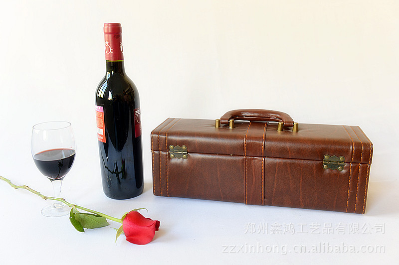 单只装棕色红酒皮盒 葡萄酒礼品包装盒单支装(含酒具)
