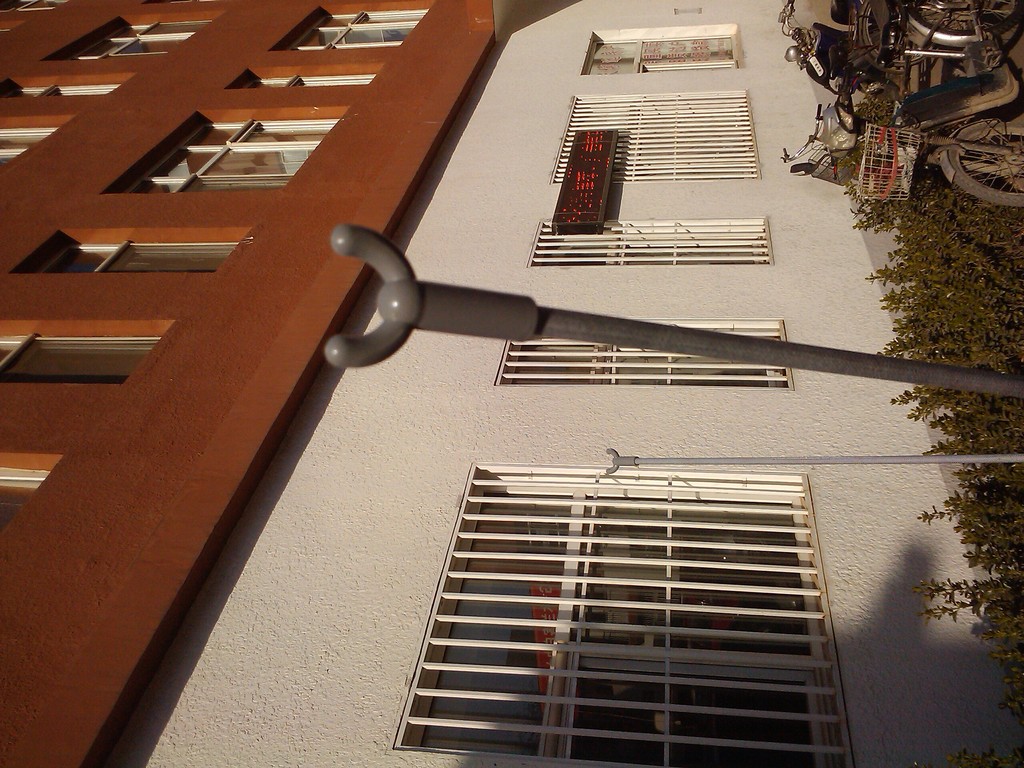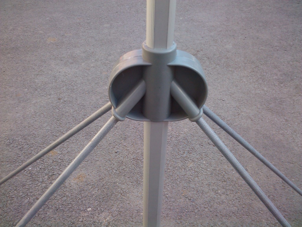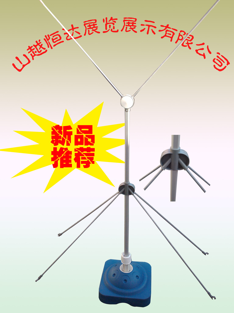 材料:铝合金支架管,底座是塑料的吹塑成型,上杆是纤维杆