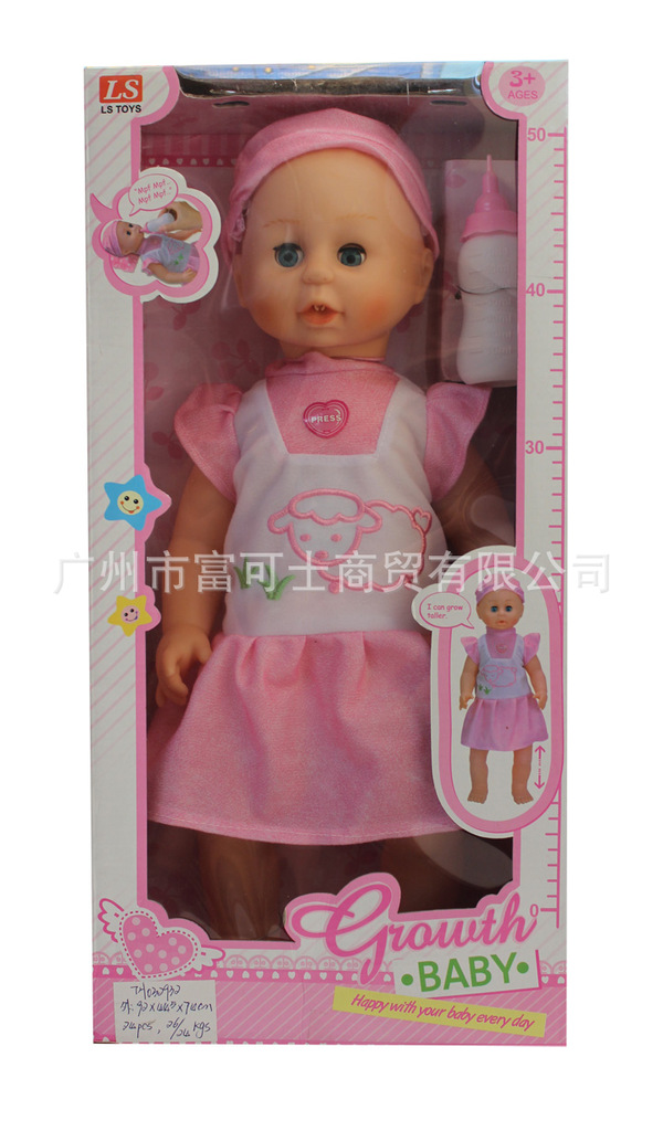 它是一人会叫会动会长高的娃娃!它具有伪真实会动的眼睛!它只要一喝奶就会长高!