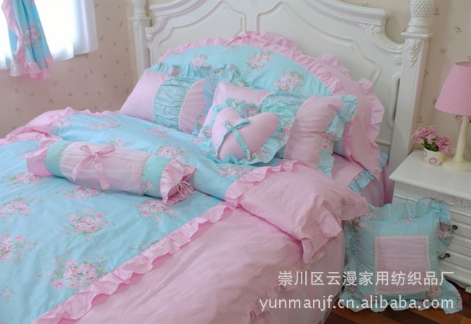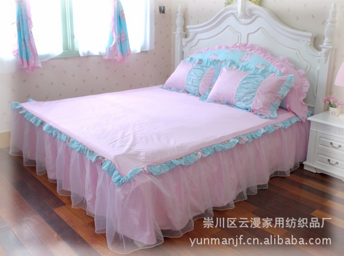 【产品面料】100%全棉,款式新颖,做工精致,浪漫唯美的优质床裙4件套,采用环保斜纹全棉印花布做面料,整体图案设计搭配新颖,花样独特,颜色清新柔和。面料细腻而富有韧性,柔软舒适,手感细腻,使用舒适、吸湿透气,好舒服哦。色牢度高并且使用环保染料,面料缩水率均达到国家标准,不起球。可100%放心使用!