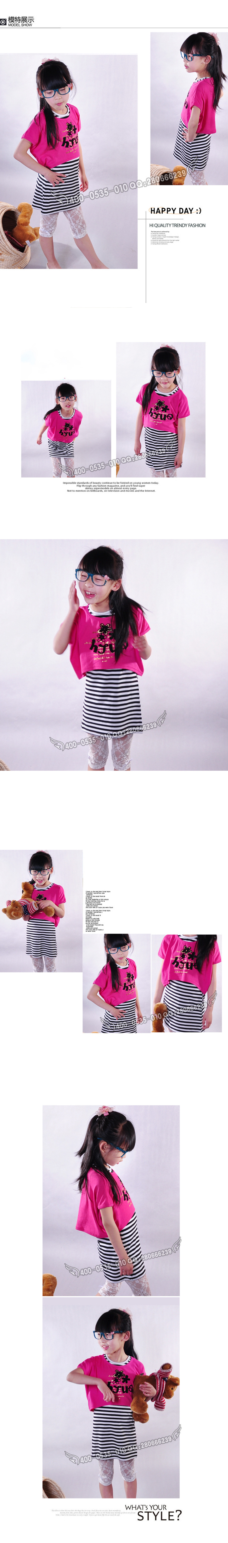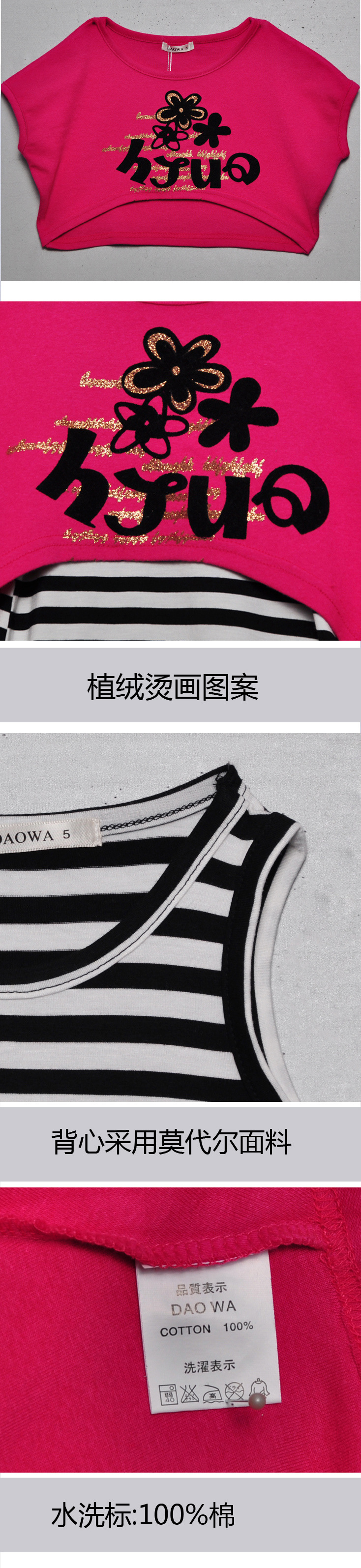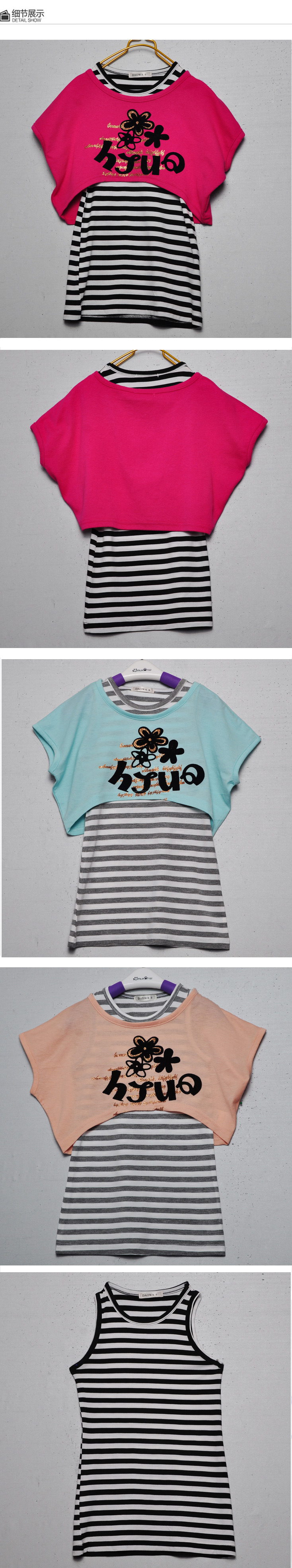 混批 女童莫代尔条纹长款背心 短袖T恤 女童两件套 1B3642