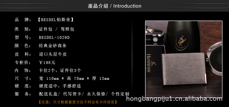 ⊙ 合作须知: (1)生产起订量:所有产品起订量均为100pcs(可混款各50pcs)。 (2)打样及打样费用:根据不同的产品收取一定的打样费(下订单后退回或抵货款),打样周期为5-7天。鸿邦皮具配有专业设计人员,可按照客户要求对材质、款式、颜色等进行修改设计,欢迎来图、来样打版洽谈。 (3)报价:本产品报价为参考价格。实际价格会根据具体的做法,订单的数量,材料,工艺的选择等因素有所调整,欢迎咨询。 (4)Logo商标:可按照客户要求在产品上制作相应的商标(如压印、丝印、烫印、金属LOGO…)。 (5)包装:一般产品出厂包装是用胶袋,无纺布袋,纸箱等包装,也可以根据客户的要求进行包装。 (6)包装盒:此款报价不含包装外盒费用,可提供普通外盒和高档外盒供客户选择,也可以根据客户的要求订制包装外盒,满足不同客户的需求! (7)生产周期:(1000个为例)生产周期为15-20天,不含打样时间、运输时间。 (8)运输:快递、物流、航空等方式。可帮客人寻找最安全,最便捷,最实惠的运输公司。(达到一定数量,广州市区免费送货上门) 欢迎广大客户咨询,洽谈。谢谢!