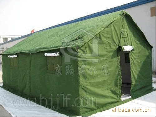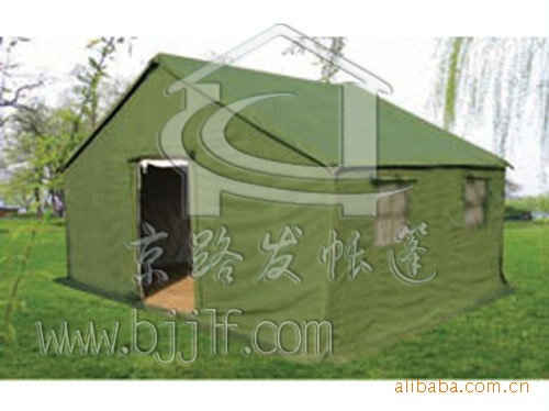 (5) 帐篷大顶面料为军绿色三防布,山墙、围墙面料为军绿牛帆布(冬暖夏凉),中间使用毛毡,内衬白布,做工以军品帐篷为标准。窗户设有纱网,具有防蚊虫、通风等功能