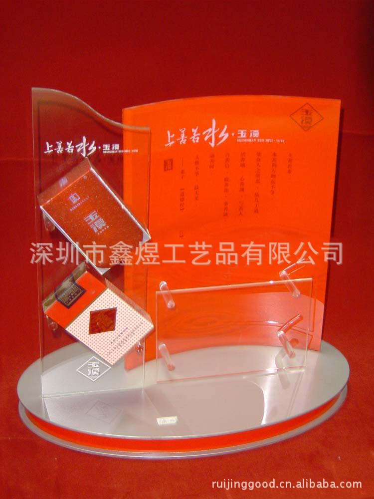 亚克力/压克力(有机玻璃)展示用品 大型卖场终端终端展示柜,压克力家居用品,有机玻璃化妆品展示架、烟酒展示架、钟表展示架,皮具衣帽展示架,电子产品展示架、文具用品展示架,珠宝首饰陈列架、眼镜展示架等各种高档产品展示用品;专业生产压克力(有机玻璃)授权代理牌、经销商牌、奖牌、POP广告牌,酒店用品、各类礼品包装盒;压克力纸镇、压克力无缝热压产品,模型及机械面板,环境导向标识系统...... 水晶胶(POLY/高透明树脂)工艺品 高档透明水晶胶内埋工艺礼品、赠品,树脂卫浴套装、树脂工艺品玩具,文具摆件,纸镇...... 旗类礼品 奖杯,奖牌,广告旗,公司旗,刀旗,手摇旗,旗座,旗杆...... 我们本着”产品是最好的代言人”、“以质量求生存、以信誉求发展”的宗旨服务客户,秉着“专业化、规模化、国际化”的发展方向,一贯秉承“诚信、服务、创新、务实、价值”的理念,得到了社会各界人士的关怀与厚爱,业务不断壮大,我们愿以自己的水准和不懈的努力,一如既往的为您提供满意产品,优质的服务。工厂直营,款式繁多,手工精细,品质优良,价格公道。