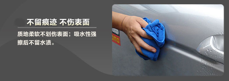 新一代的擦车毛巾,外表看和普通毛巾无大差异,实则本产品是一种韩国进口的特殊纤维,采用纳米技术制造。其纤维组织特别细腻,具有良好的弹性和羽绒般手感,及特有的静电吸尘能力。不掉毛、吸水性好、超柔软。 |
