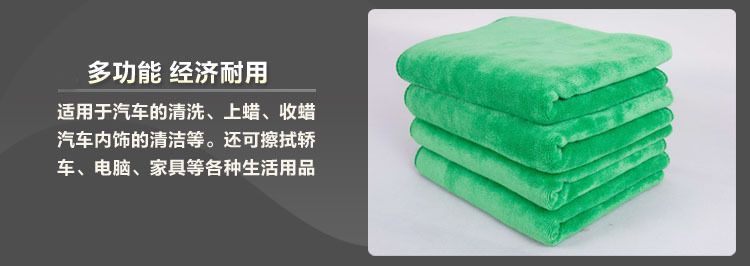 使用导引: 1.汽车美容——多功能高级擦车巾 适用于汽车室内仪表台、皮革坐椅、玻璃等物体的清洁保护:将保护剂喷于物体表面后用毛巾擦拭即可,干湿两用,用毛巾擦试物体表面的污垢及尘土,表面不掉毛絮,吸水性好。 2.车漆——擦蜡、抛光巾 先用毛巾把车身擦洗干净,将海绵沾蜡均匀涂在车漆上,待车蜡呈凝固状时,用毛巾进行抛光处理。 3.人体——干发帽、干发巾、浴巾 适用于擦干皮肤、毛发的水分,避免电吹风吹影响发质,以及能有效预防感冒。 4.厨房用用于厨房卫生清洁,吸油渍,好清洗,易拧干。 5.强去污力:直径0.4UM的微纤维细度级为真丝的1/10,其特殊的横断面能更有效的捕获小至几微米的尘埃颗粒,除污,去油的效果十分明显。 6.不脱毛:高强的合纤长丝,不易断裂,同时采用精编织法,不抽丝,不脱圈,纤维也不易从毛巾表面脱落。 7.易清洗:使用后只需要用清水或稍加洗涤剂清洗即可。 |