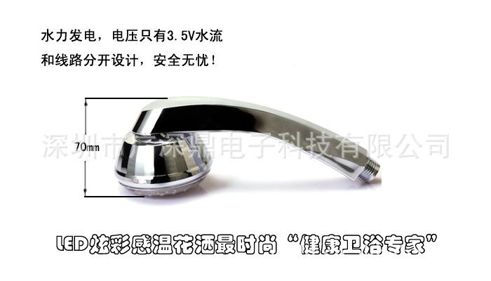 ●LED花洒所需的电力不需要额外的电池及电源来供应,完全是通过水流来发电,产品设计新颖,环保又节能。