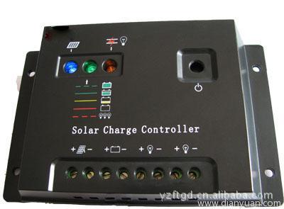 充电及超压指示:当系统连接正常,且有阳光照射到光电池板时,充电指示灯(1)为绿色常亮,表示系统充电电路正常;当充电指示灯(1)出现绿色快速闪烁时,说明系统过电压,处理见故障处理内容;充电过程使用了PWM方式,如果发生过放动作,充电先要达到提升充电电压,并保持10分钟,而后降到直充电压,保持10分钟,以激活蓄电池,避免硫化结晶,最后降