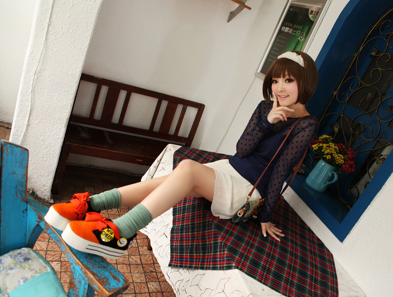 2012秋季爆款韩版人气、坡跟厚底鞋拼色休闲情侣单鞋9235