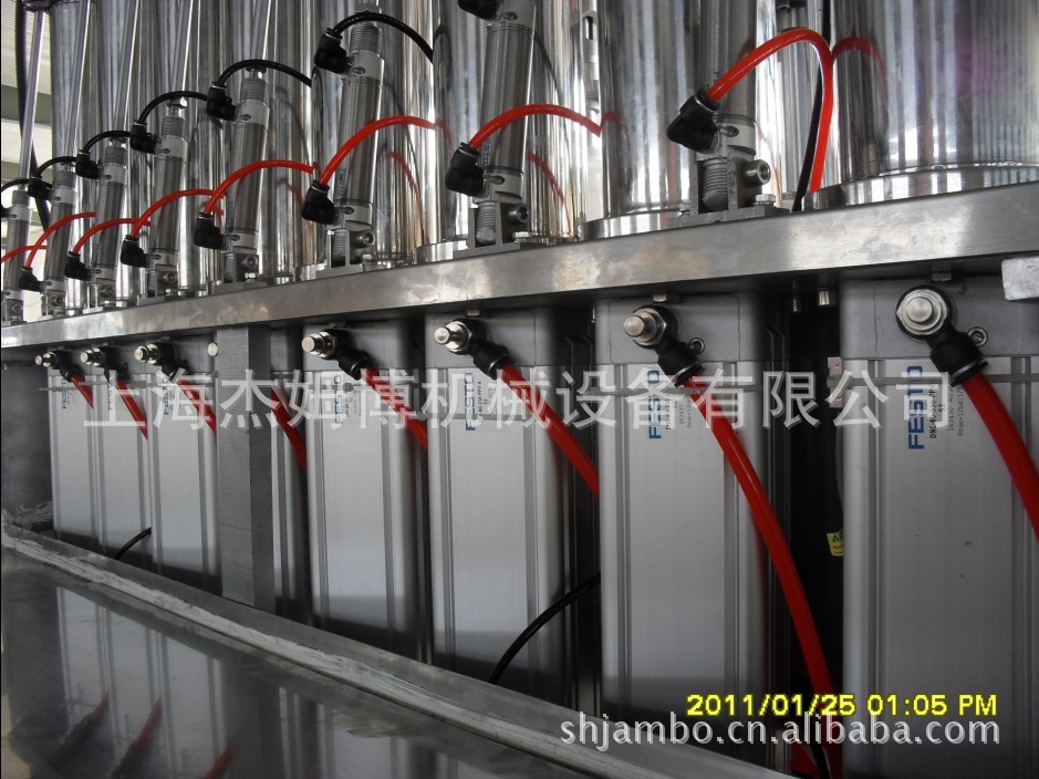 灌装系统采用容积式计量来经行灌装,使计量更加方便、准确。灌装机的输送系统采用机械调节控制输送速度,确保物料在行进中不外溢。并采用下降注油的灌装方式,以避免物料溅出。同时还附有真空吸抽装置,确保工作台面清洁。当更换瓶型时,只需转动手轮调整灌装系统的初始高度,调整出料嘴的左右位置,即可适应各种桶型,该调整过程简便、可靠。