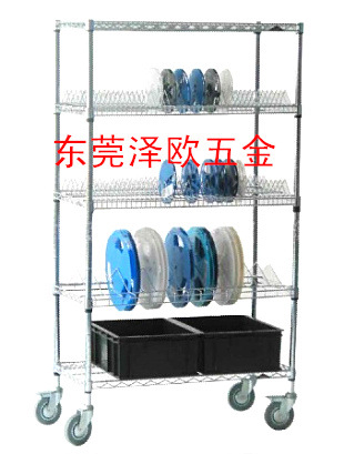 7、主要产品有:置物架、防静电货架、手推车、保全车、围网车、SMT物料存放车、流动货架、服装展