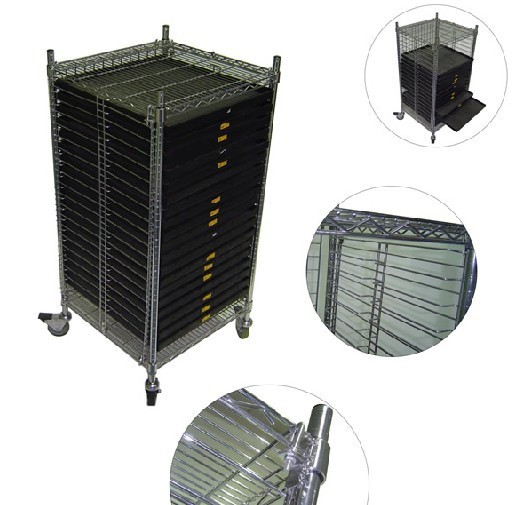 防静电货架,扶手可选线网搁板高度可调,4个万向脚轮,
