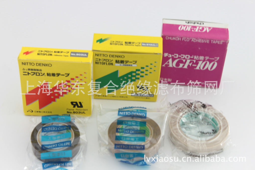 日东电工高温胶带采用在玻璃纤维布里浸渗四氟化乙烯树脂(PTFE)分散溶液后烧制而成的材料为基材。该胶带将单面作表面处理后、涂敷硅酮类粘合剂、具有优良的耐热性和机械强度。