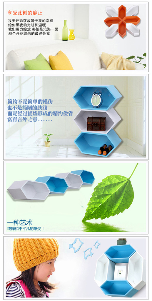 用最简单的东西装点家居空间。天津红宝塔创意家居公司的创意家居用品如红宝塔创意格子、搁板、立体墙贴等家居用品上百种不同的造型,可以随意设计排列,多种色彩搭配组合,让您的爱家充满色彩,突显创意。为了满足广大客户的要求我公司生产的红宝塔创意格子有大有小,不同的套系件数也各不相同,既兼备收纳装饰功能,还可以搭积木,回味儿时乐趣。