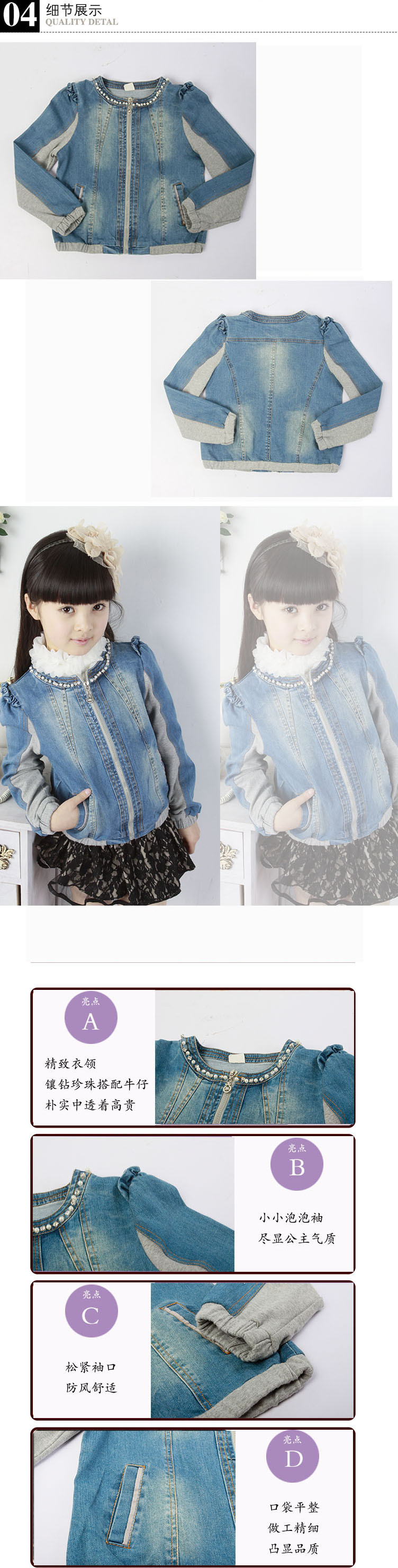 2013春款 韩版 女童 中大童 镶钻珍珠 水洗牛仔服 儿童上衣 外套