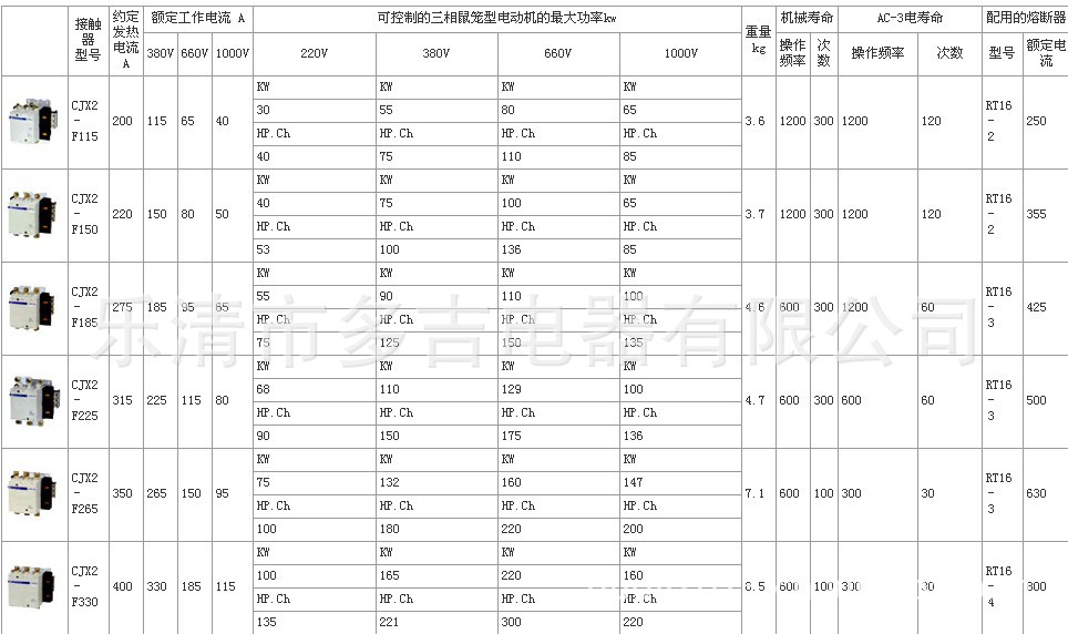 一、用途与规格● CJX2F(LC1-F)系列交流接触器(以下简称接触器)适用于交流50或60赫兹,电压至1000伏,电流至780安以下的电路中,供远距离接通与分断电路及频繁起动、控制交流电动机。接触器还可与辅助头组,空气延时头,机械联锁机构等附件,组成延时接触器、机械联锁接触器、星三角起动器。并且可以和热继电器组成磁力起动器。二、使用环境●环境温度:-25~+40℃●海拔高度:不超过300mm●空气相对湿度:在+40℃时不超过50%;在较低温度下可以有较高的相对湿度;在+25℃地不超过90%;并考虑到发生在产品表面上的凝露●使用环境:应避免引起爆炸危险的介质,及腐蚀金属和破坏绝缘的有害气体和导电尘埃的环境中使用●安装位置:安装面与垂直面的倾斜度不超过±30℃●冲击与振动:产品应安装和使用在无显著摇动,冲击和振动的地方三、产品优点●产品符合IEC、NFC、VDE、BS等一些先进国家的标准及中国GB14048-4标准。能在世界任何国家和地区及相对恶劣环境中使用●技术经济指达到当代世界先进水平,具有体积小、重量轻、能耗低、寿命长、能派生、互换维修方便●产品在通电吸合及断电释放过程中的动作可靠性,在当代同类用途产品中处于领先地位。接触器115-780A