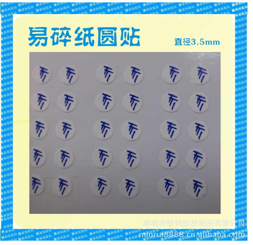 纸面易碎难排废.面纸厚度0.1MM,适用于小标签。印刷效果好,正常油墨4小时内干透,另可以根据客户要求增加碎度。
