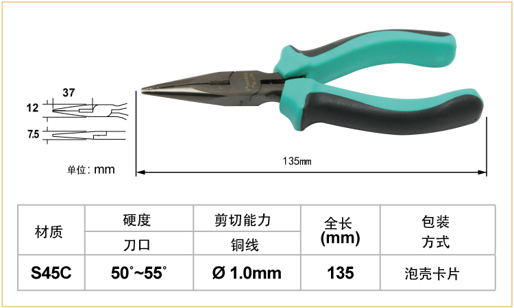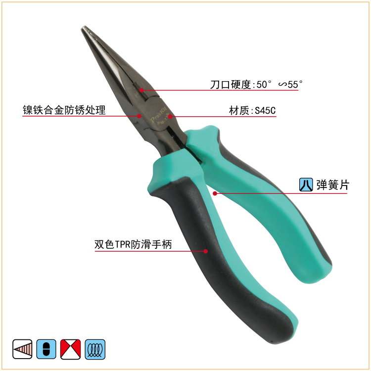 台湾宝工 Pro'skit PM-736 双色有牙尖嘴钳