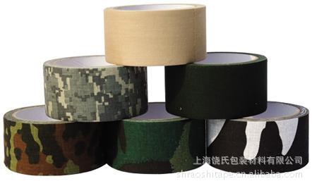 迷彩布基胶带 特性:以棉布作为基材,涂以合成树脂胶水、易撕,易贴、易清洁。 用途:用于、猎人、摄影师等户外作业者。
