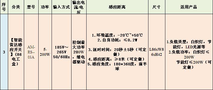 5.与红外产品比较:雷达开关感应距离更远,角度广,无死区,能穿透玻璃,和薄木板,根据功率不同,可以穿透不同厚度的墙壁,不受环境、温度、灰尘等影响,在37度情况下,感应距离不会缩短。雷达开关是红外开关的理想更新换代产品。