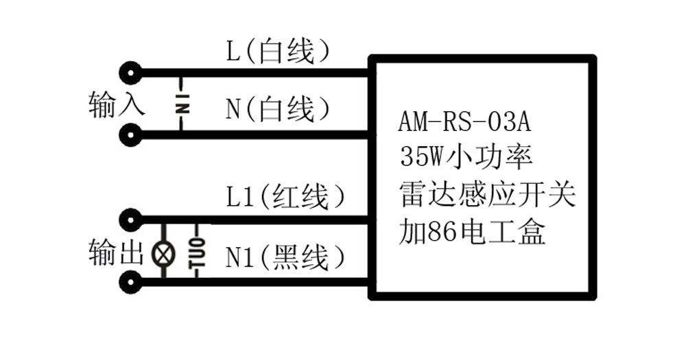 3.工作方式:感应开关接通后,在延时时间段内,如有人体活动,开关将持续接通,直到人离开并顺延时间。