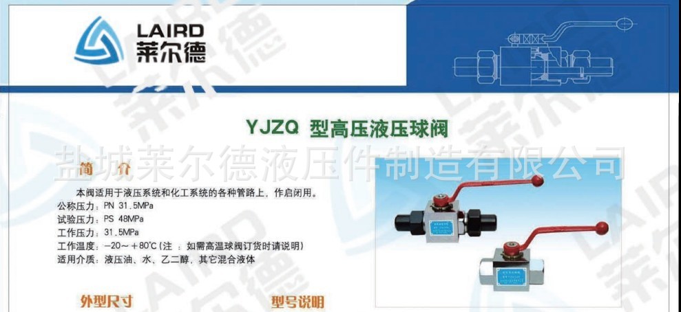 YJZQ高压球阀适用于液压系统和化工系统的各种管路上,作启闭用.