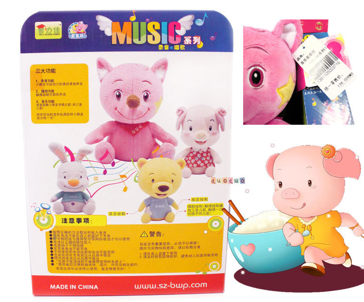 主要功能概述:可以无数次录音,触摸放音,触摸唱歌,可以清洁,内置3首音乐,按住录音键后讲自己想说的话待结束录音后触摸放音键后可以听到自己的声音。