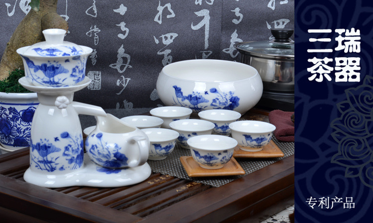 三瑞通用自动茶具套装,继承传统沏茶基本工序,进行创新改良新体验,改进了改进传统功夫茶具盖碗易烫手的缺陷,只要轻轻一拉出水开关,即可把泡好的茶引入茶海,同样享受茶道品茶会友的乐趣。