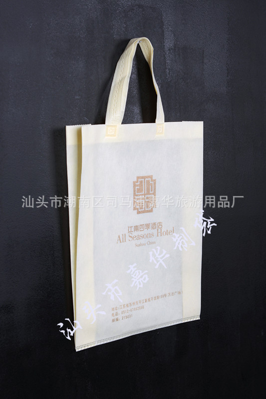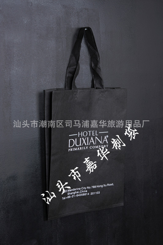 无纺布袋(又称为非织造布袋,英文:Nonwoven bags)是一种绿色产品,又叫无纺布环保袋、无纺布购物袋、无纺布便携袋。无纺布的主要成份是PP(丙纶),布料有多种颜色可供客户选择,袋子尺寸、厚度、样式可以由客户指定。能承受丝印烫印等多种印刷工艺,图案logo及文字也可按客户要求印刷。同时产品坚韧耐用、造型美观,透气性好,可重复使用、可洗涤,可丝印广告、唛头使用期长,适宜任何公司、任何行业作为广告宣传、赠品之用。